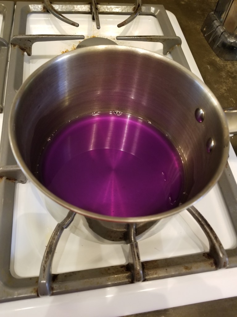 It’s a simple process from making a tea, to experimenting with phytochemicals and pH, and creating a rolling boil with sugar and pectin. I used this recipe as a base, but reduced it to one pint and substituted powdered pectin. As I am unable to test the acid content of this recipe, I would not recommend it for traditional canning.