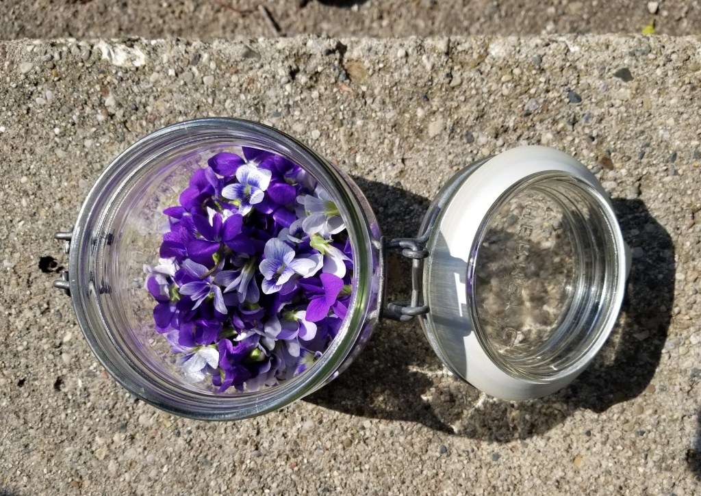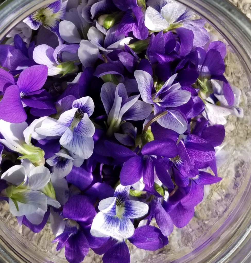 If you are harvesting violets for fresh use, they (and other edible flowers) are best stored in glass jars with glass lids.