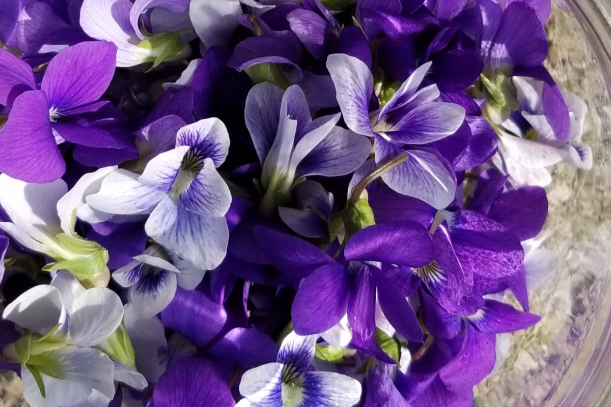 Not only a hardy perennial, they are quick spreaders and tolerate even the most frivolous transplanting. When I bought my home, I inherited a veritable field of violets which I have since moved and mowed, and nearly each year I have found a new use for these edible flowers.