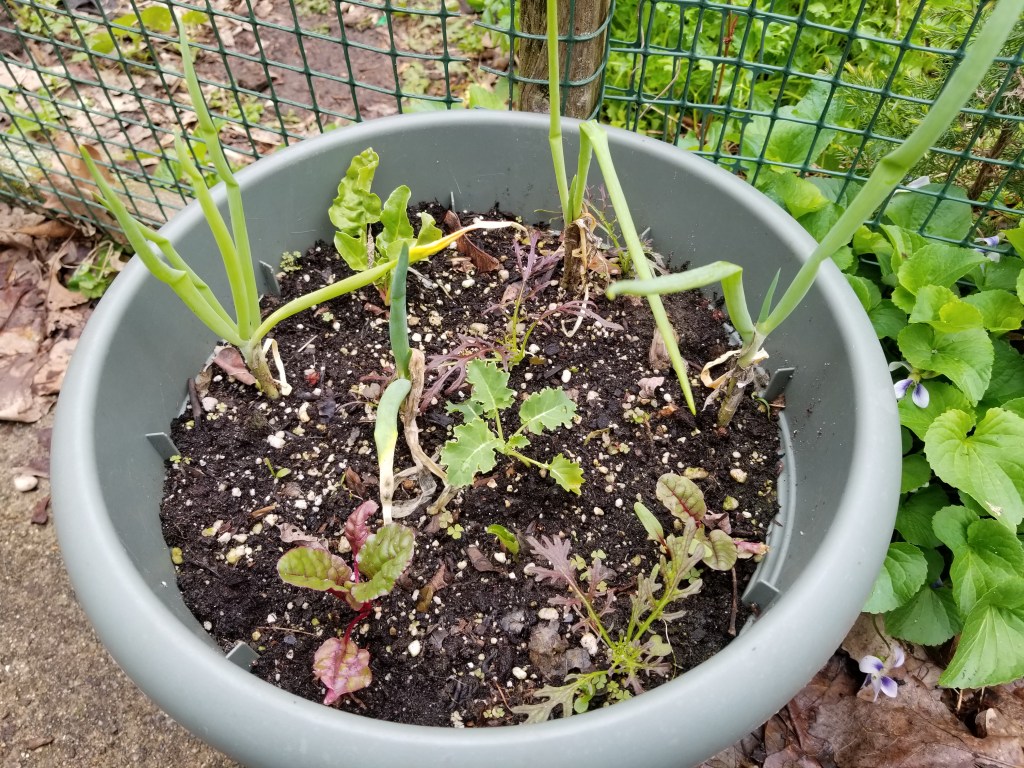 Garlic, lettuce stowaways, and two planter boxes with hands down the best lettuce I have ever grown in my life [interplanted with kale + onions]. This is the only nice thing I have to say about the fact that we got snow in May.