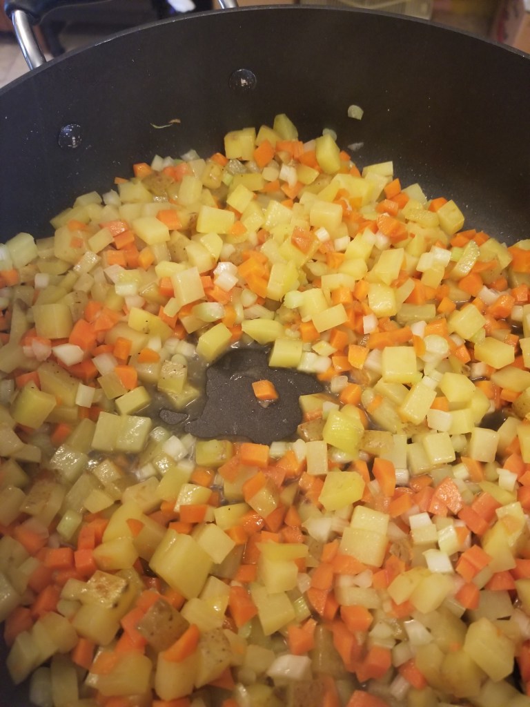 Add the shredded onion and radish to the diced kale. Add turmeric, curry powder, cayenne, and salt to the vegetable mixture and stir well to combine.