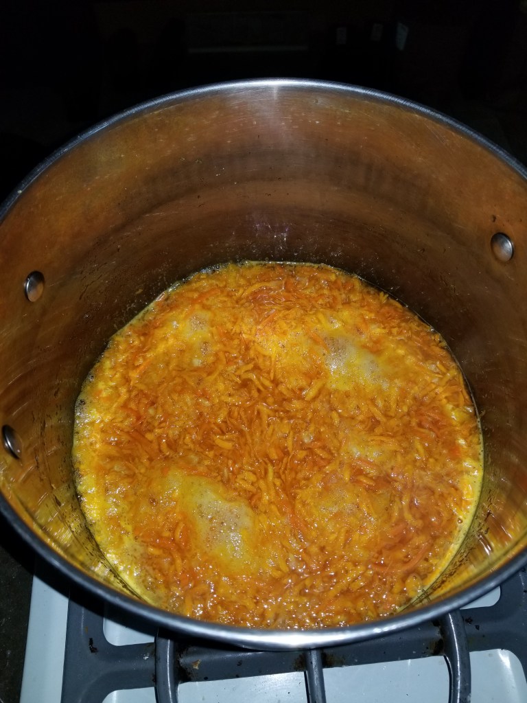 I have a few (er, 5 or so) canning recipe books, but there is one I always go to first: Well Preserved by Mary Anne Dragan. The recipes are well written, easy to understand and produce a delicious product every time. However, they always fall short of their intended target production. Knowing this, I always slightly scale up the recipes. This being my first time making carrot marmalade, I did not scale high enough. What should have been 4-5 jars ended up 3.5 before the bottom fell out of one of them. To add insult to injury, one of the two remaining jars didn’t seal. This equated to four and a half hours of work for one 8 oz jar into the pantry.