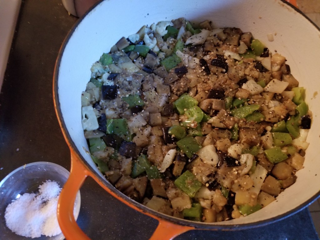 Spread the veg on a baking sheet, in a single layer, not touching (socially distanced veg roast more evenly). Roast ~15 minutes, flip, roast another 10-15 minutes until tender and lightly browned.