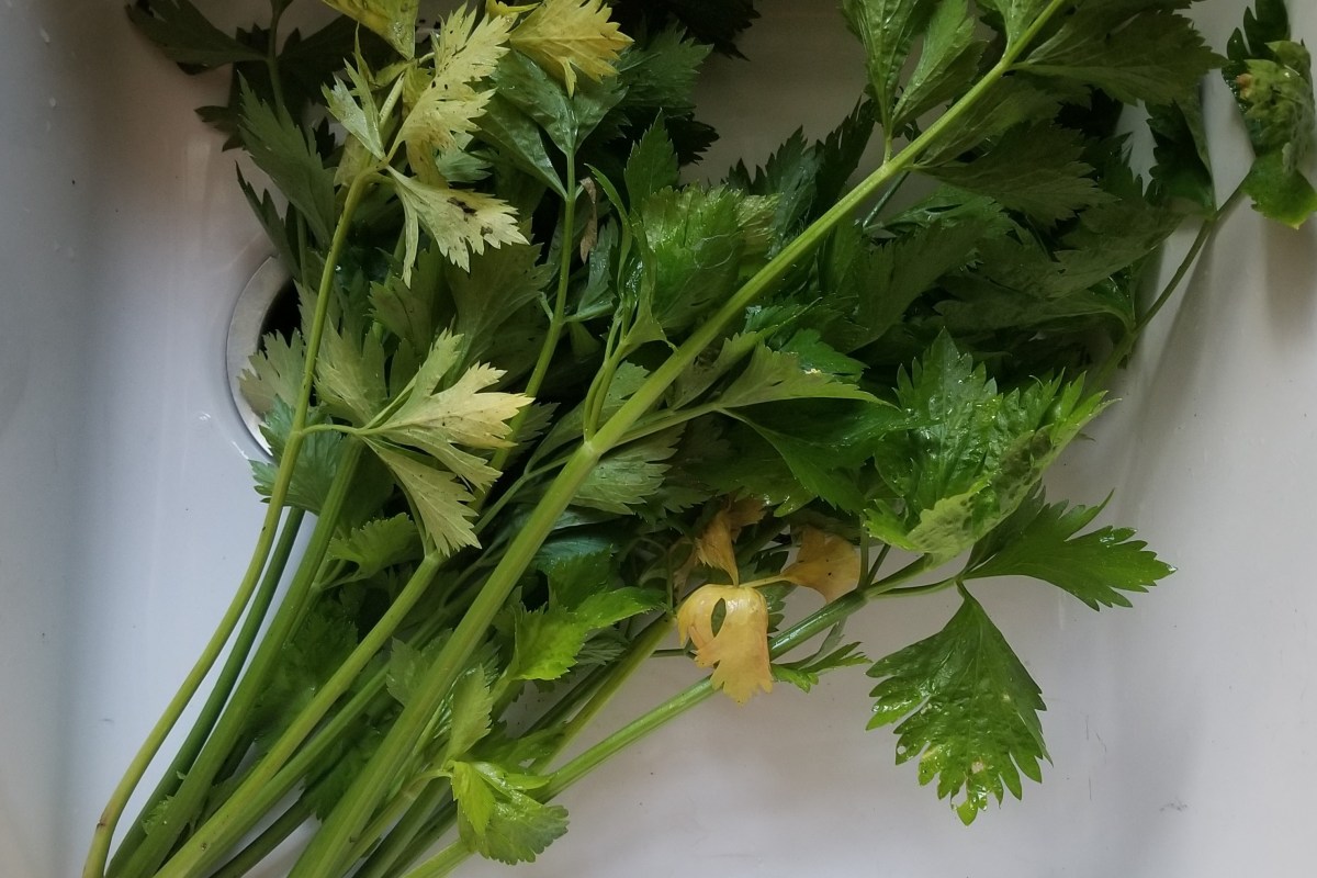 Celery cut from the garden this morning, destined for tuna salad. Don’t let your celery liquefy!
